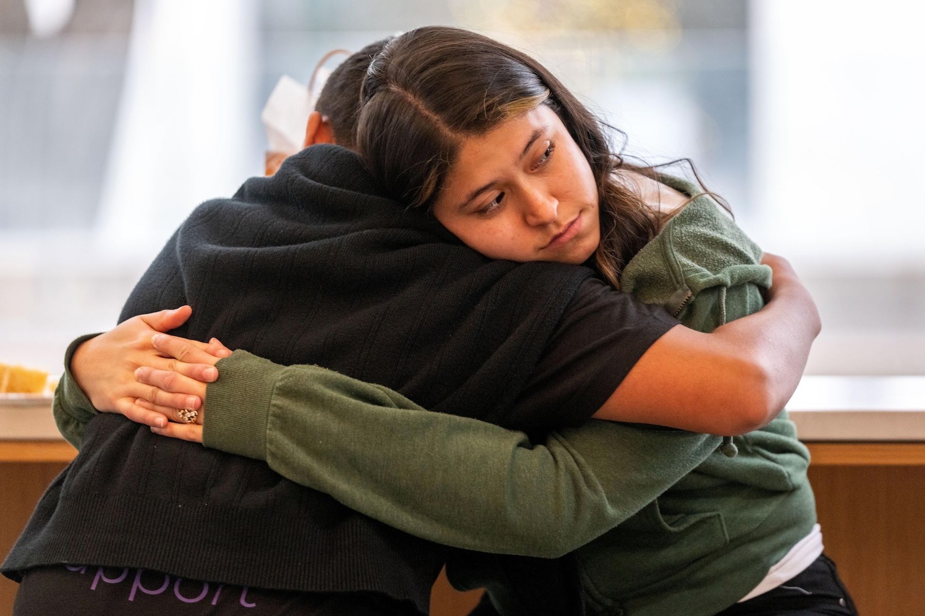 Jalyssa Zaragoza, 22, hugs her brother Daniel Melrose, 13. Jalyssa credits Janie’s Angels with helping repair the relationship with her mother while she was incarcerated. (Photo by Jeffrey McWhorter)