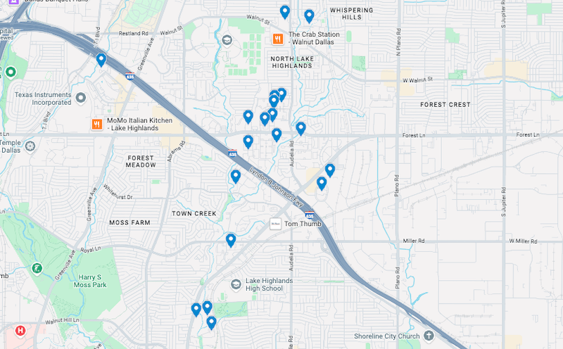 Lake Highlands has 20 “traveling HFCs,” more than any other neighborhood in the city of Dallas. (Google Maps)