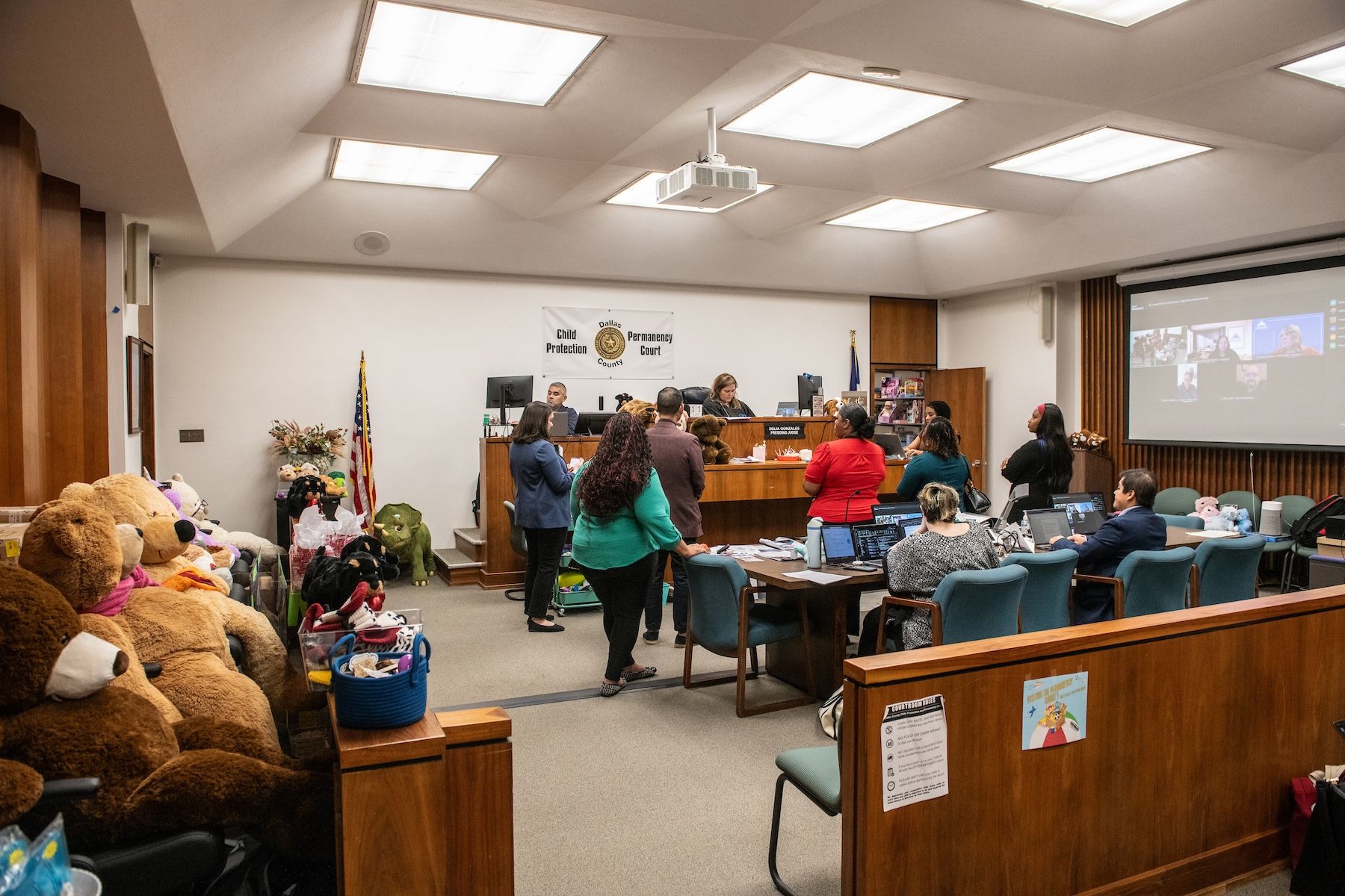 Indeed, Judge Gonzales’ courtroom is a cacophony of discordant emotions. A toddler’s giggles as she pets the visiting therapy dog; a school-age boy’s giddy exclamation when he found the prized golden egg hidden near the jury box; a teenager’s goofy recitation to Gonzales about “girl drama” at her foster-care home. Alongside these innocent faces, adults gathered in front of the judge’s bench, often with grim reports on developmental delays, an upcoming retina surgery, and older siblings who ran away from their residential treatment center.