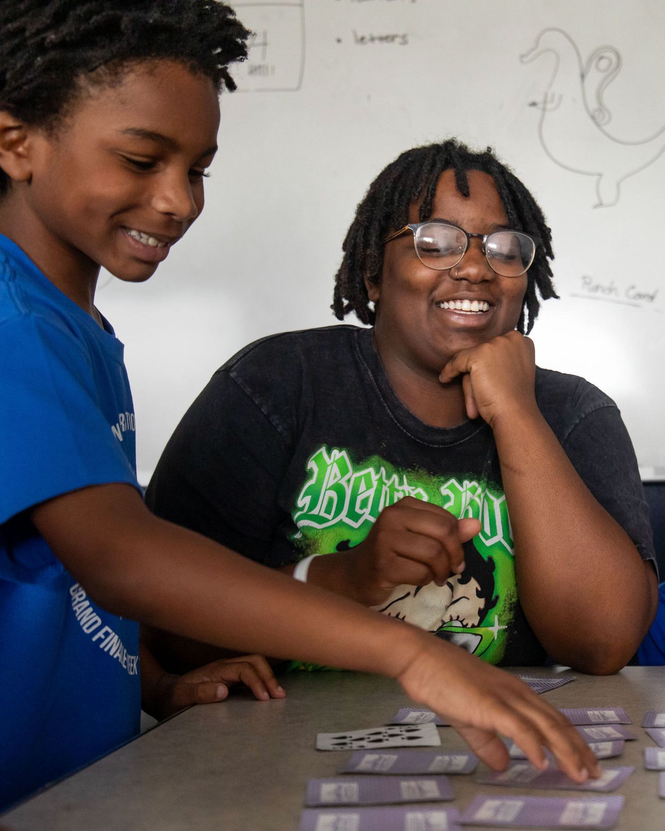 ![]() Janai Webster, right, leads a group game at the Project Transformation camp. A student at Benedict College, Webster returned for a second year as a staffer. (Lynda M. González for The Lab Report) | ![]() Ally, 7, left, reads with Georgia Lee, a volunteer from First Rowlett United Methodist Church. (Lynda M. González for The Lab Report) |